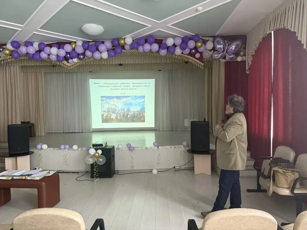 Участники встречи погрузились в мир познания истории малой Родины: от древнейших времён до сегодняшних дней. Для более полного ознакомления с истоками школьникам была предложена авторская мультимедийная презентация, подготовленная замечательным краеведом Г. В. Конищевым.